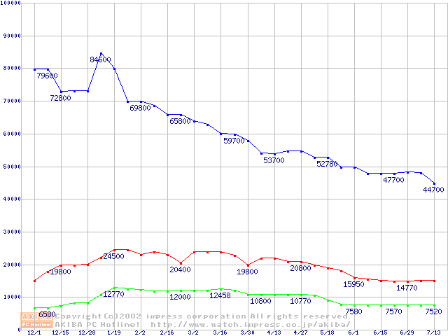 | [↑前グラフ]: | PC3200(DDR400) DDR SDRAM DIMMの最安値推移 |