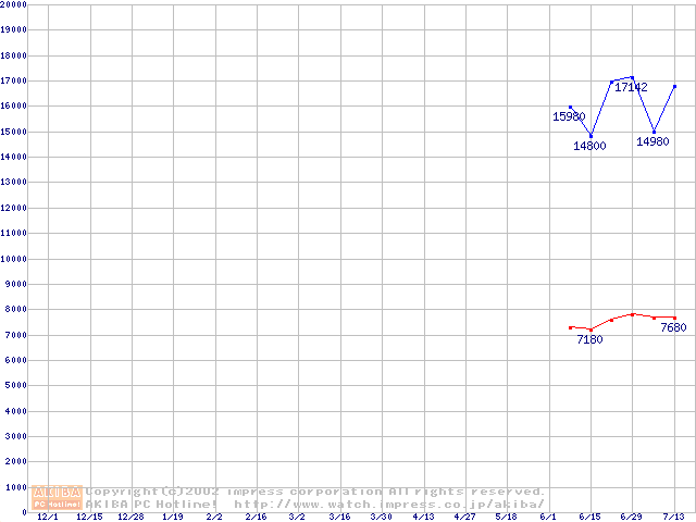 | [↓次グラフ]: | PC2700(DDR333) DDR SDRAM DIMM ECC対応 Registeredタイプの最安値推移 |