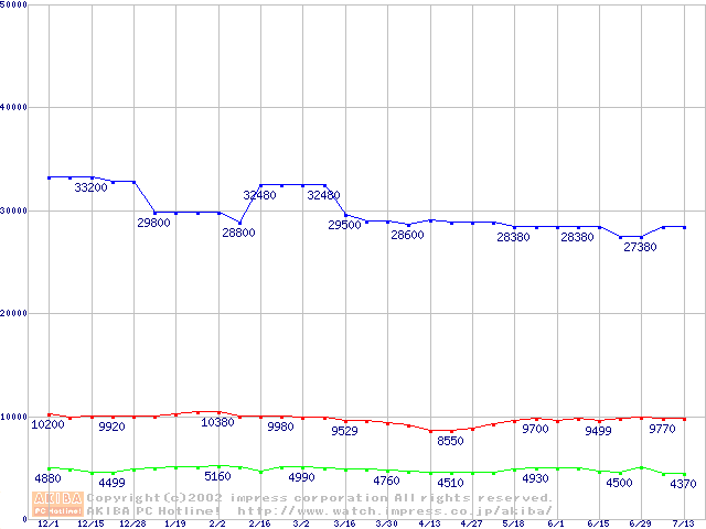 | [↓次グラフ]: | PC800-40 DRDRAM RIMMの最安値推移 |