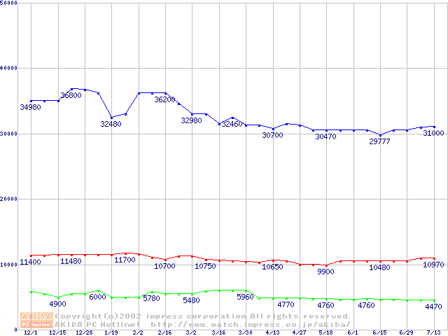 | [↓次グラフ]: | PC800-40 DRDRAM RIMM ECC対応の最安値推移 |