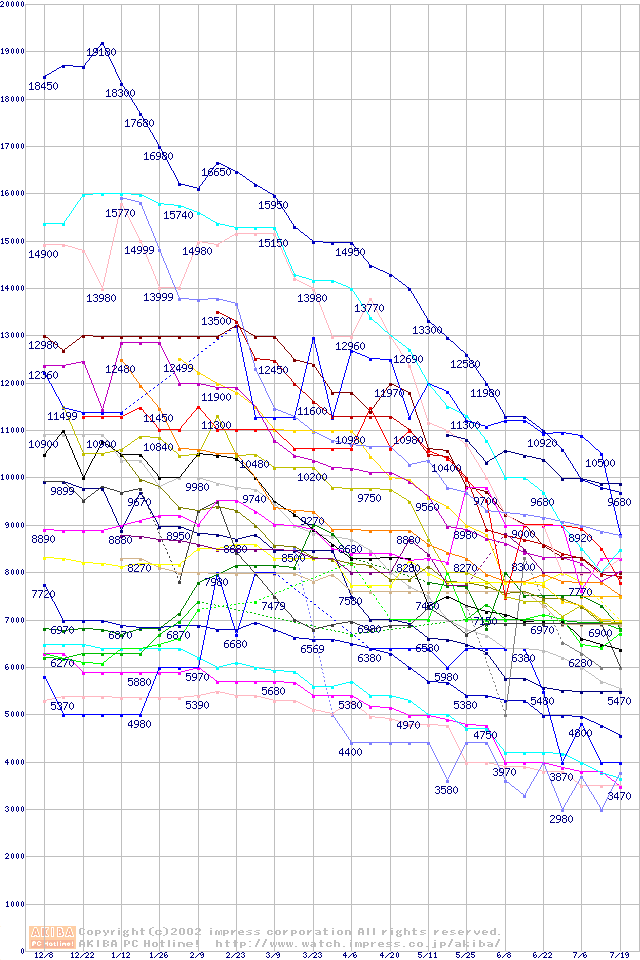 CPU主要製品(最安値1万円~2万円未満)の最安値推移