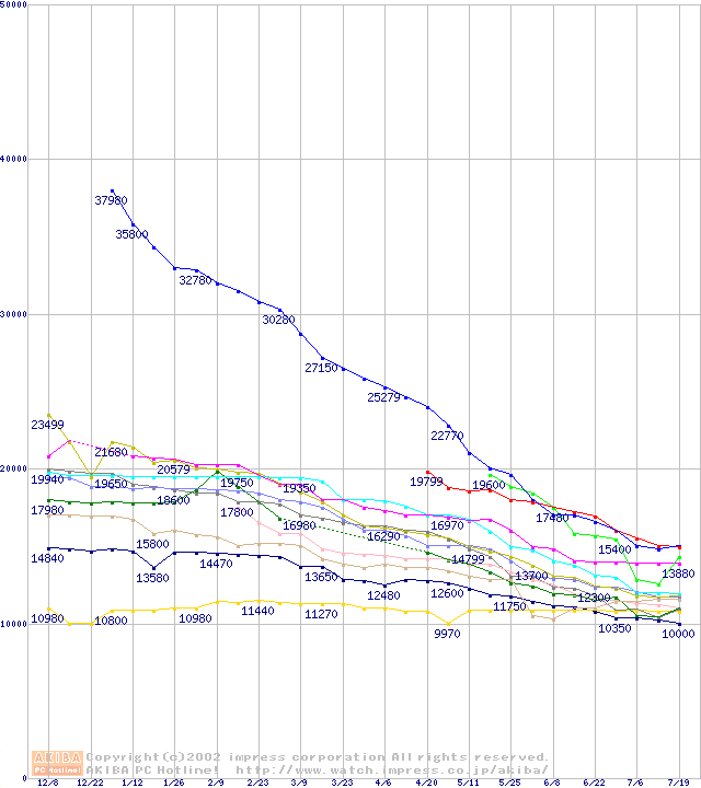 HDD主要製品(最安値1万5千円~2万円未満)の最安値推移