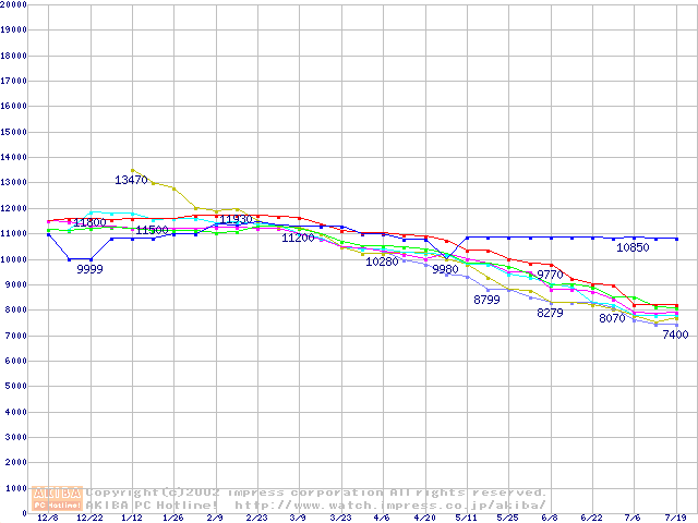 | [↑前グラフ]: | HDD 20GB~30GB未満(7200rpmクラス)の最安値推移 |