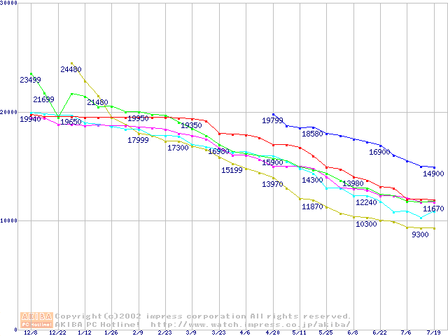 | [↓次グラフ]: | HDD 100GB以上(7200rpmクラス)の最安値推移 |