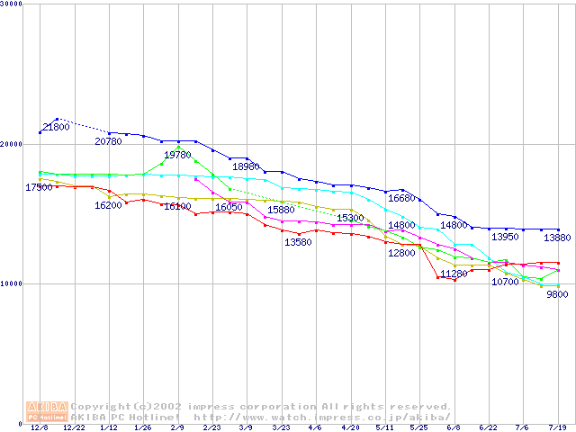 | [↓次グラフ]: | HDD 100GB以上(5400rpmクラス)の最安値推移 |
