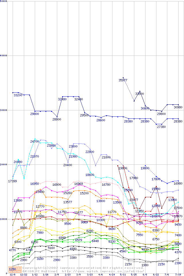メモリ主要製品の最安値推移