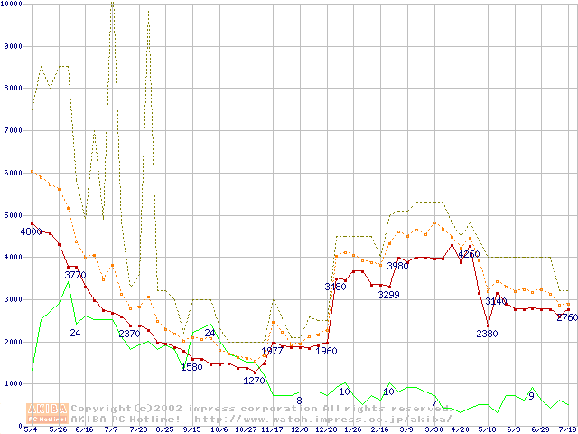 PC133 SDRAM DIMM CasLatency=2の最安値推移