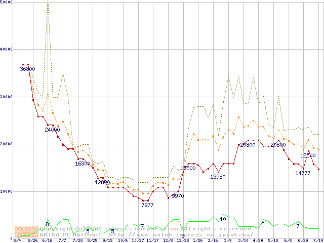 PC133 SDRAM DIMM CasLatency=3 ECC対応の最安値推移