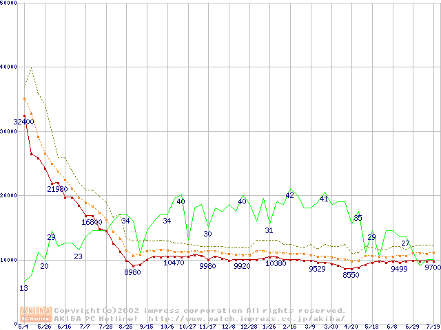メモリ主要製品(最安値5千円~1万円未満)の最安値推移