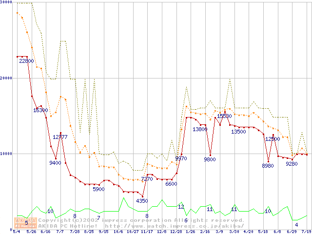 PC100 SDRAM DIMM CasLatency=2の最安値推移