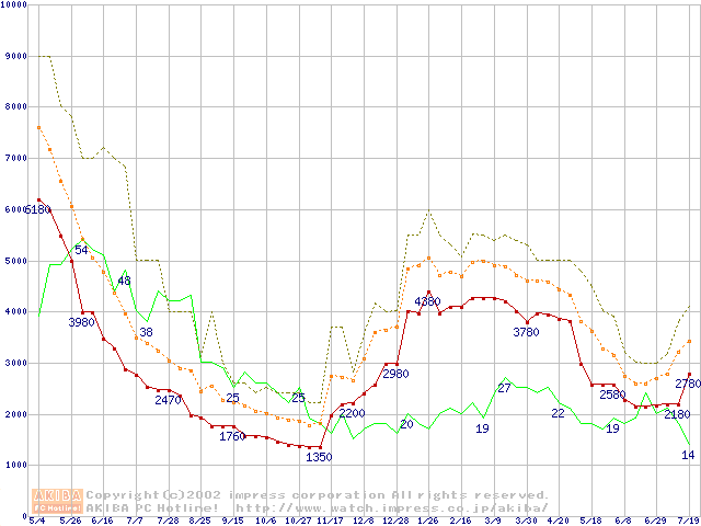 メモリ主要製品の最安値推移