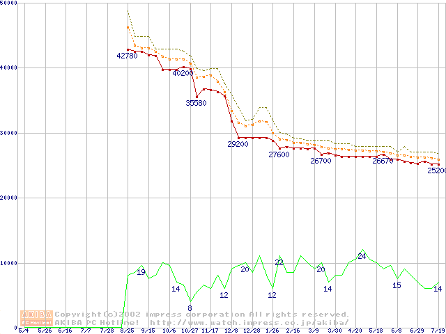 Pentium III-S 1.26GHz FC-PGA2 リテールパッケージの価格推移