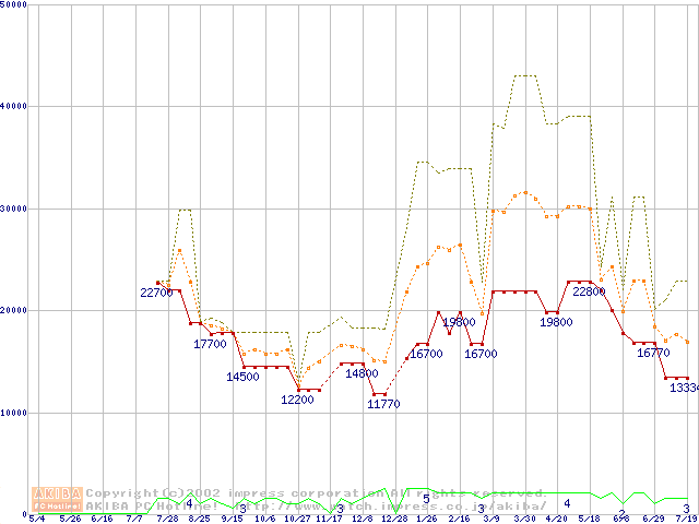 PC100 SDRAM DIMM CasLatency=2 ECC対応 Registeredタイプの最安値推移