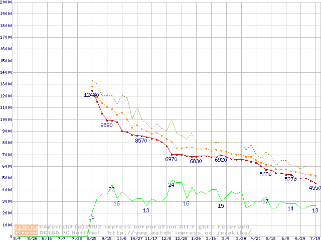 Socket A (Morgan,PGA,FSB 200MHz,L2 64KB)の最安値推移