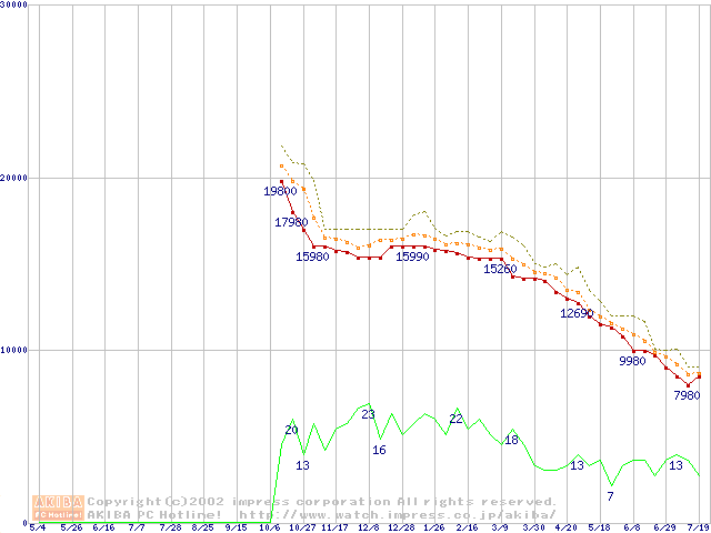 Socket A (OPGA,FSB 266MHz,L2 256KB)の最安値推移