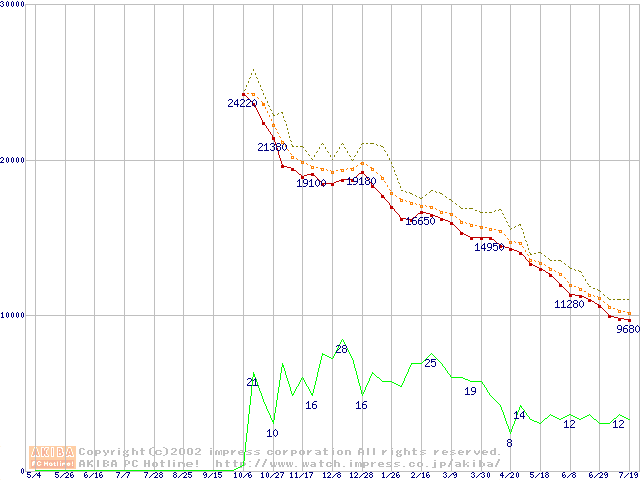 Socket A (OPGA,FSB 266MHz,L2 256KB)の最安値推移