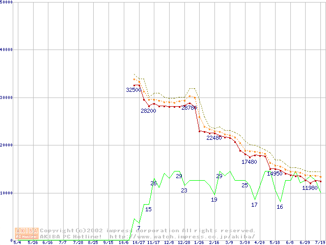 Athlon XP 1800+ (1.53GHz) リテールパッケージの価格推移