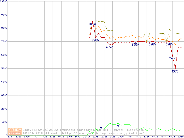 Socket 370 (PGA,FSB 133MHz,L2 64KB)の最安値推移