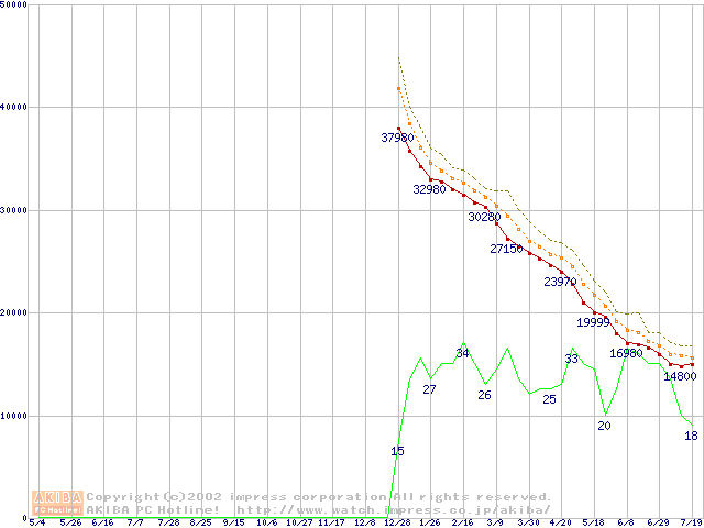 Deskstar 120GXP (7200rpm,UltraATA/100 2MB)の最安値推移