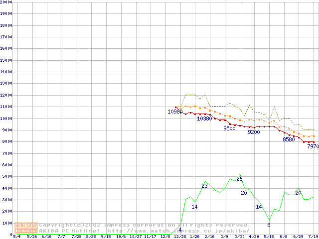 DiamondMax D540X (5400rpm,UltraATA/100,40GB/Platter,流体軸受)の最安値推移
