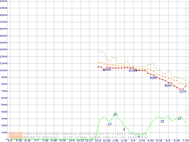 DiamondMax D540X (5400rpm,UltraATA/100,40GB/Platter,流体軸受)の最安値推移
