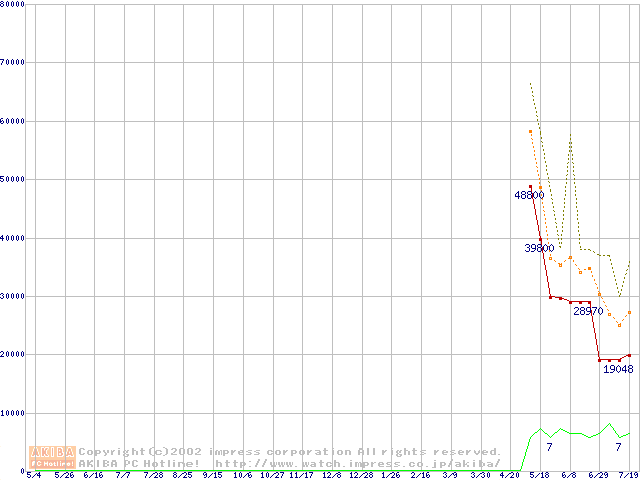 PC3200(DDR400) DDR SDRAM DIMMの最安値推移