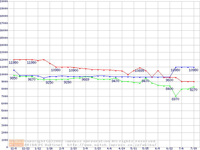 | [↓次グラフ]: | MKシリーズ (9.5mm,5400rpm,16MB,流体軸受け)の最安値推移 |