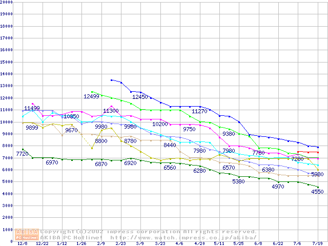 | [↓次グラフ]: | Socket A (Spitfire,PGA,FSB 200MHz,L2 64KB)の最安値推移 |