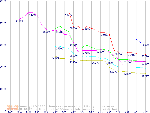 | [↑前グラフ]: | Socket A (OPGA,FSB 266MHz,L2 256KB)の最安値推移 |