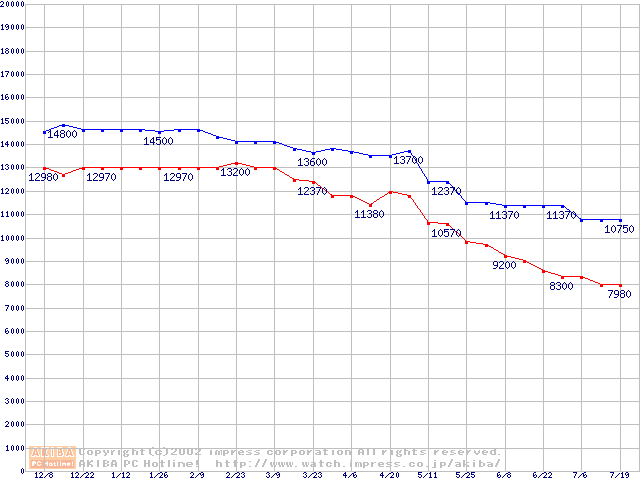 | [↓次グラフ]: | Socket A (Thunderbird,PGA,FSB 200MHz,L2 256KB)の最安値推移 |