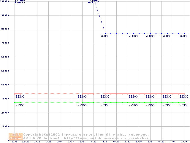 | [↑前グラフ]: | Slot 1 (SECC2,FSB 100MHz,L2 256KB)の最安値推移 |