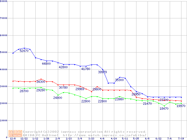 | [↑前グラフ]: | Socket 478 (micro-PGA,FSB 400MHz,L2 512KB,Northwood)の最安値推移 |