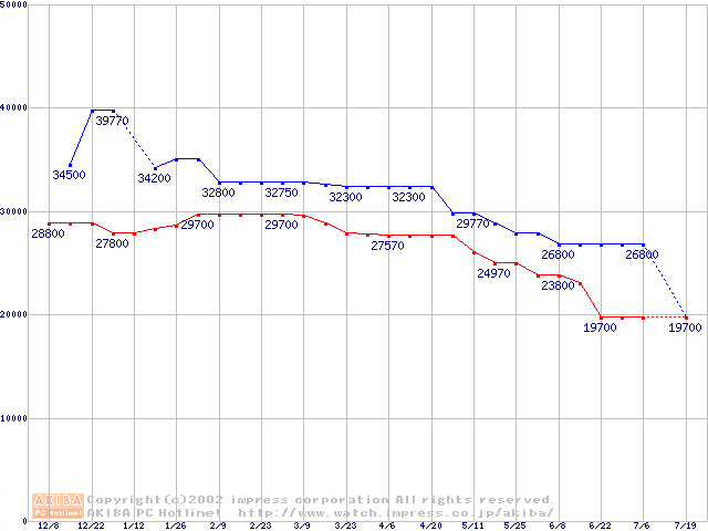 | [↑前グラフ]: | Socket 603 (micro-PGA,L2 512KB,Hyper-Threading,Prestonia)の最安値推移 |