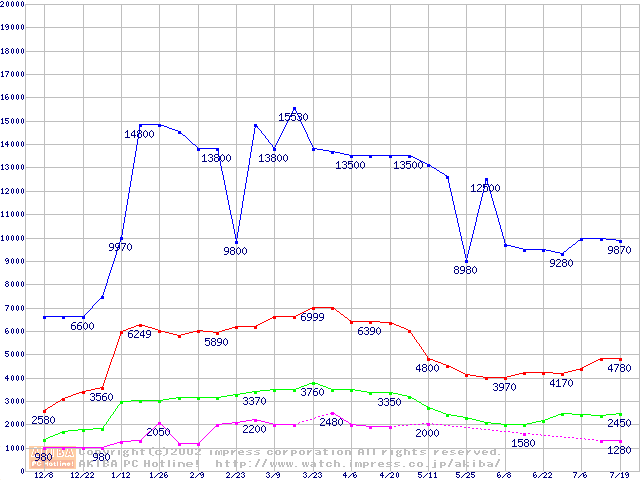 | [↓次グラフ]: | PC100 SDRAM DIMM CasLatency=2 ECC対応の最安値推移 |