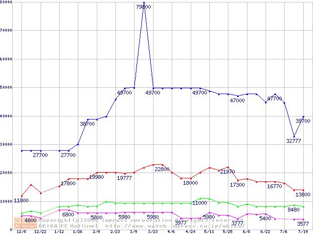 | [↑前グラフ]: | PC133 SDRAM DIMM CasLatency=3 ECC対応の最安値推移 |