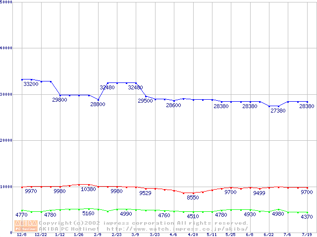 | [↓次グラフ]: | PC800-40 DRDRAM RIMMの最安値推移 |