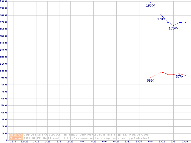 | [↓次グラフ]: | PC1066 DRDRAM RIMM4200(32bit)の最安値推移 |