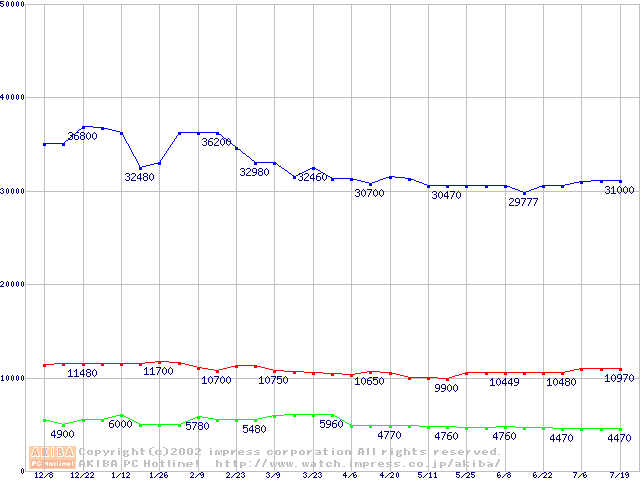 | [↓次グラフ]: | PC800-40 DRDRAM RIMM ECC対応の最安値推移 |