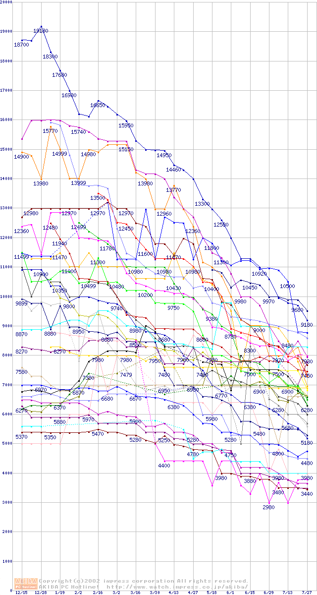CPU主要製品(最安値1万円~2万円未満)の最安値推移