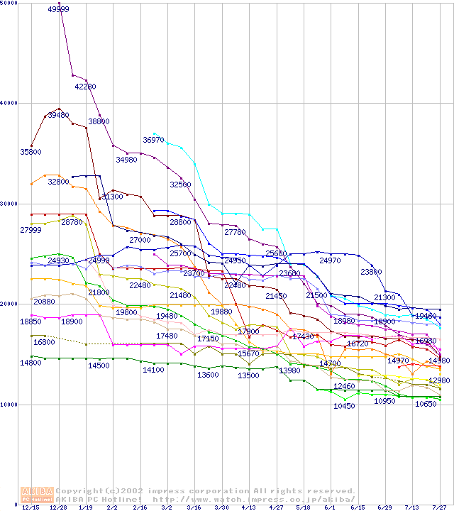 CPU主要製品(最安値1万円~2万円未満)の最安値推移