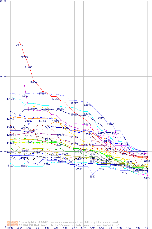 HDD主要製品の最安値推移