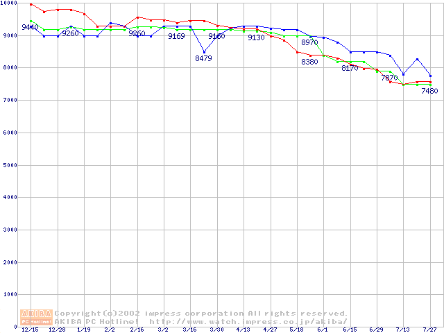 | [↑前グラフ]: | HDD 100GB以上(5400rpmクラス)の最安値推移 |