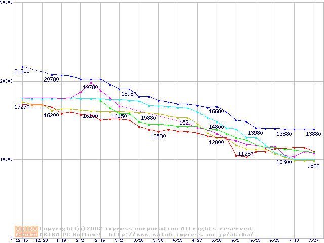 | [↓次グラフ]: | HDD 100GB以上(5400rpmクラス)の最安値推移 |