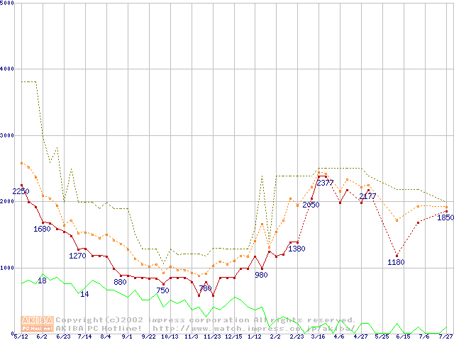 PC133 SDRAM DIMM CasLatency=3の最安値推移