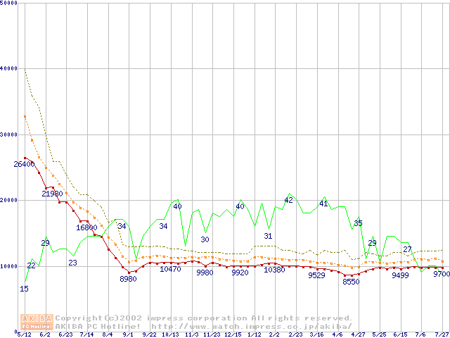 メモリ主要製品(最安値5千円~1万円未満)の最安値推移
