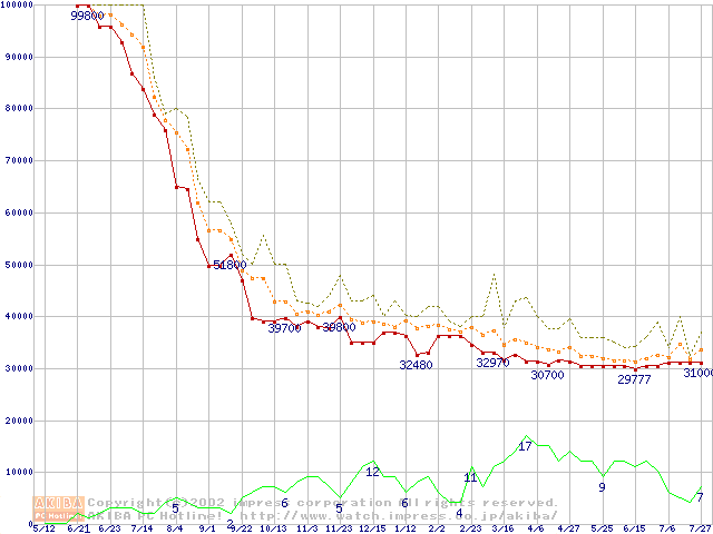 PC800-45 DRDRAM RIMM ECC対応の最安値推移