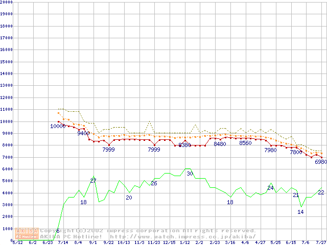 HDD 20GB~30GB未満(5400rpmクラス)の最安値推移