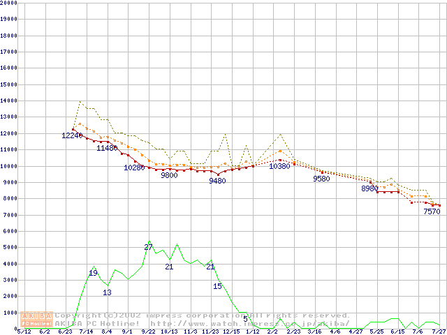 DiamondMax D540X (5400rpm,UltraATA/100,40GB/Platter)の最安値推移