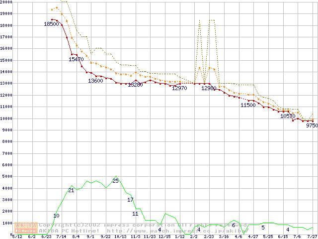 DiamondMax D540X (5400rpm,UltraATA/100,40GB/Platter)の最安値推移