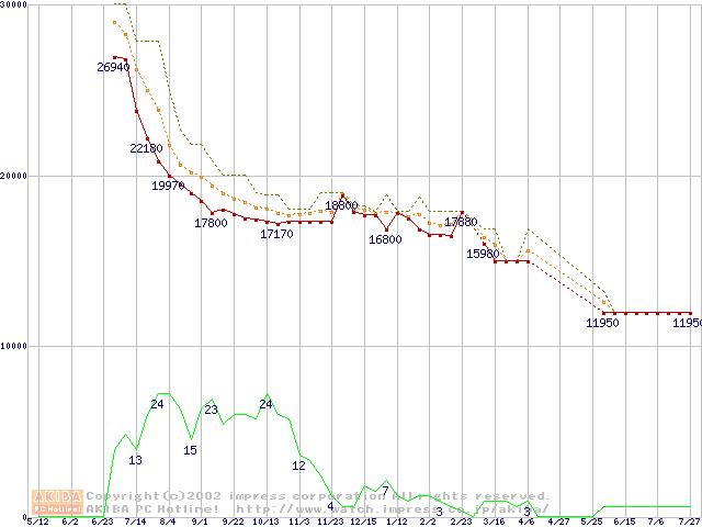 DiamondMax D540X (5400rpm,UltraATA/100,40GB/Platter)の最安値推移